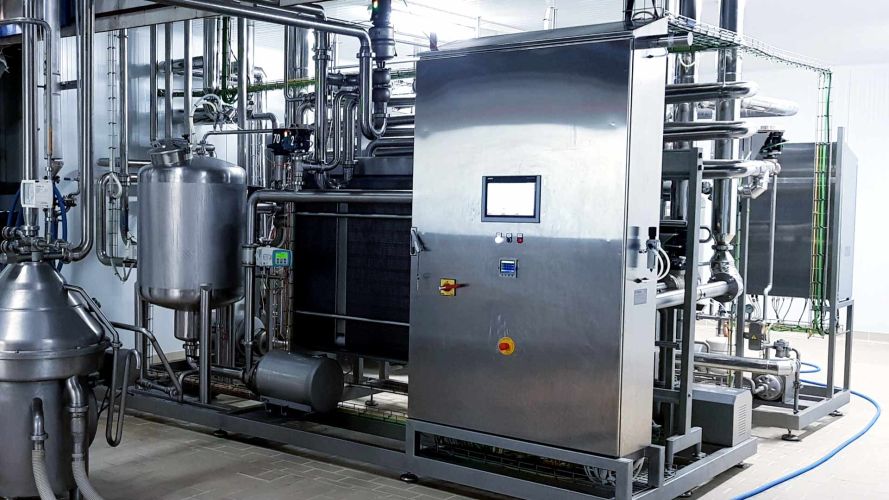 Equipos de pasteurización industrial con alta eficiencia térmica y recuperación energética. Soluciones modulares para leche, vino, cerveza, miel y otros fluidos.